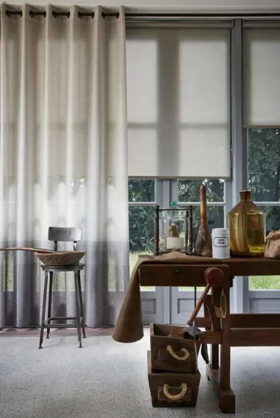 Hou je van een strakke basis met een vleugje zachtheid? Combineer dan houten jaloezieën of rolgordijnen met inbetween gordijnen. Zo behoud je het minimalistische effect van je raamdecoratie, maar voeg je tegelijkertijd textuur, warmte en gelaagdheid toe met een luchtige stof. Overdag filtert het inbetween gordijn het licht op een zachte manier, waardoor er een fijne, rustige sfeer in de ruimte ontstaat. ’s Avonds zorgen de jaloezieën of rolgordijnen voor de gewenste privacy en verduistering. Deze combinatie is niet alleen stijlvol, maar ook praktisch en tijdloos, waardoor het perfect past in woonkamers, slaapkamers en werkkamers. Bovendien kun je met kleuren, materialen en dessins eindeloos variëren, zodat je altijd een combinatie vindt die naadloos aansluit bij jouw interieur.